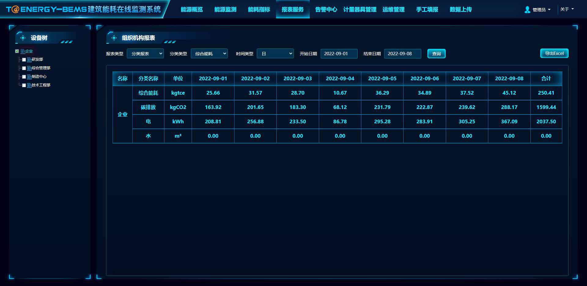 公共建筑能耗監測系統能夠實現能耗數據的報表生成和報表導出。