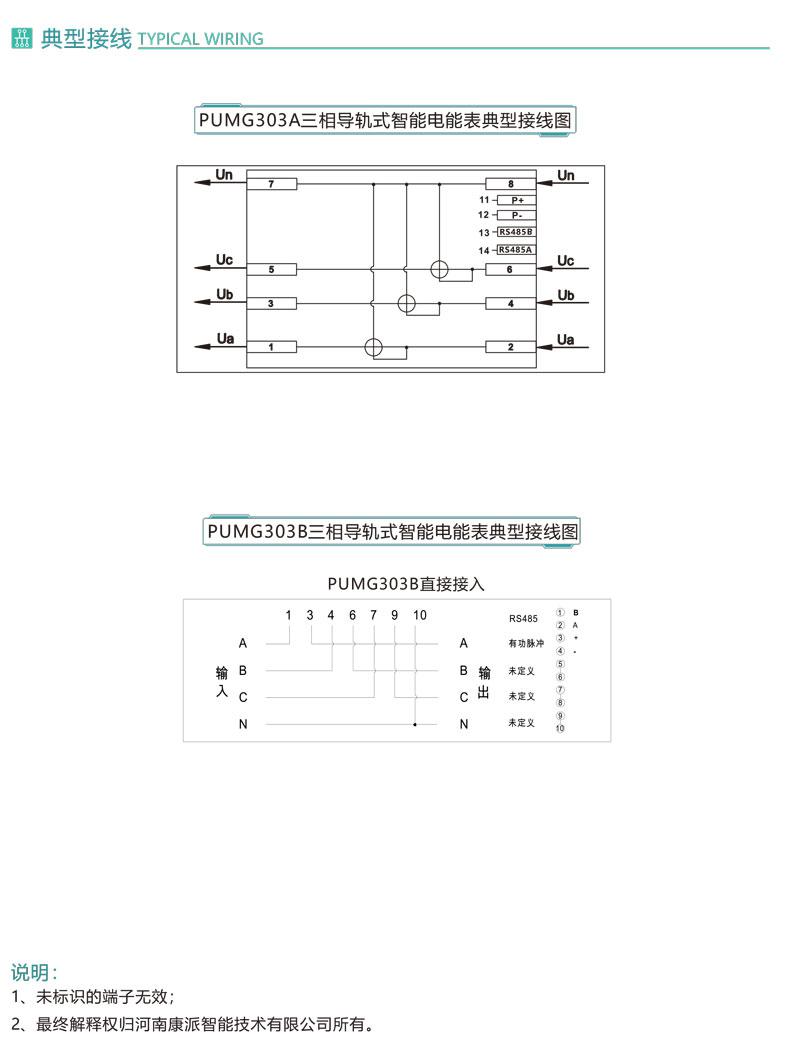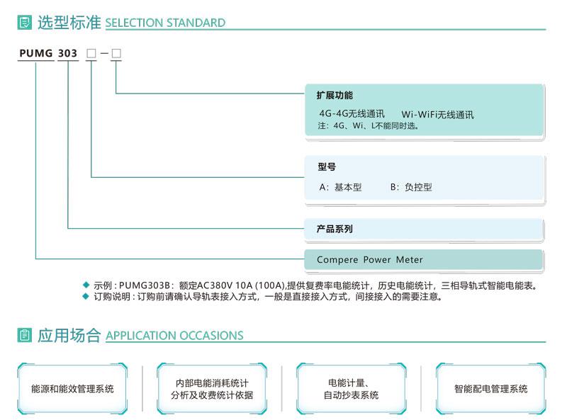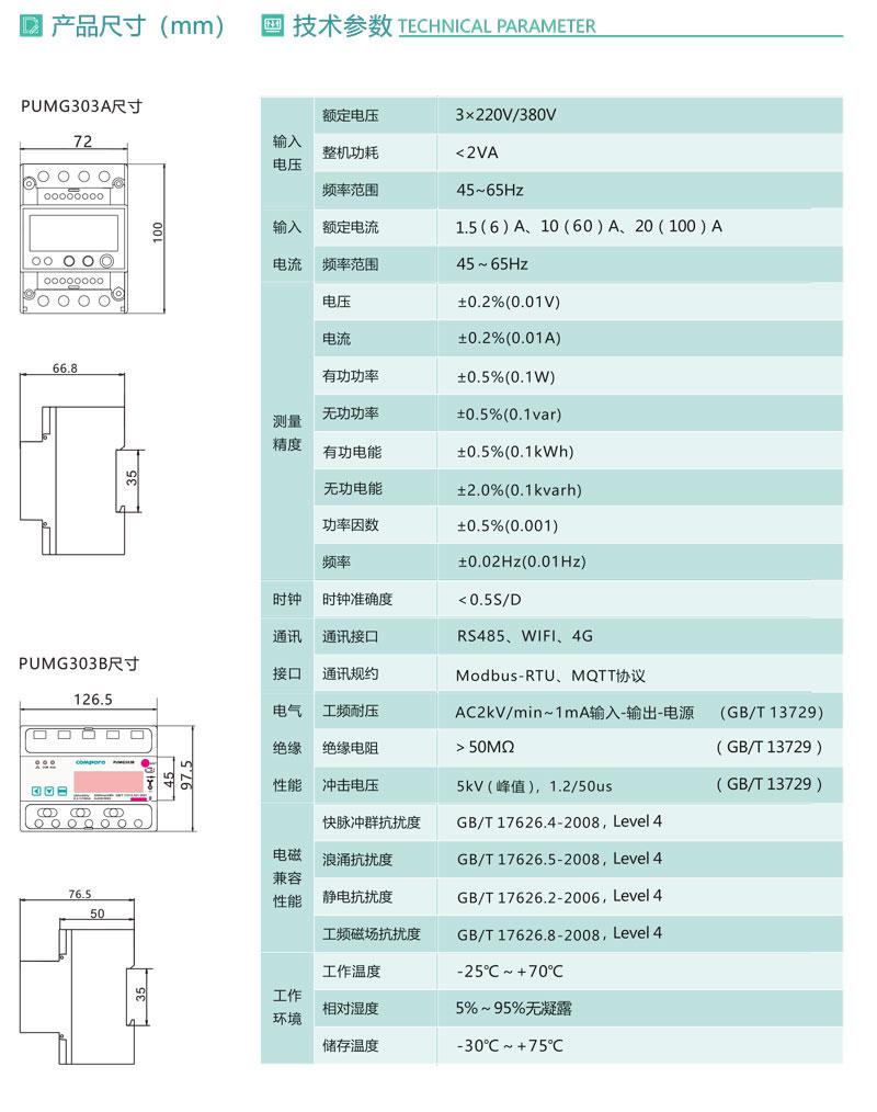 PUMG303三相導軌式智能電能表采用DIN35mm導軌式安裝結構、LCD顯示,測量電能及其它電參量,可進行時鐘、費率時段等參數設置,并具有電能脈沖輸出功能;可用RS485通訊接口與上位機實現數據交換。該電能表具有體積小巧、精度高、可靠性好、安裝方便等優點,性能指標符合國標GB/T17215-2002、GB/T17883-199和電力行業標準DL/T614-2007對電能表的各項技術要求,適用于政府機關和大型公建中對電能的分項計量,也可用于企/事業單位作電能管理考核。
