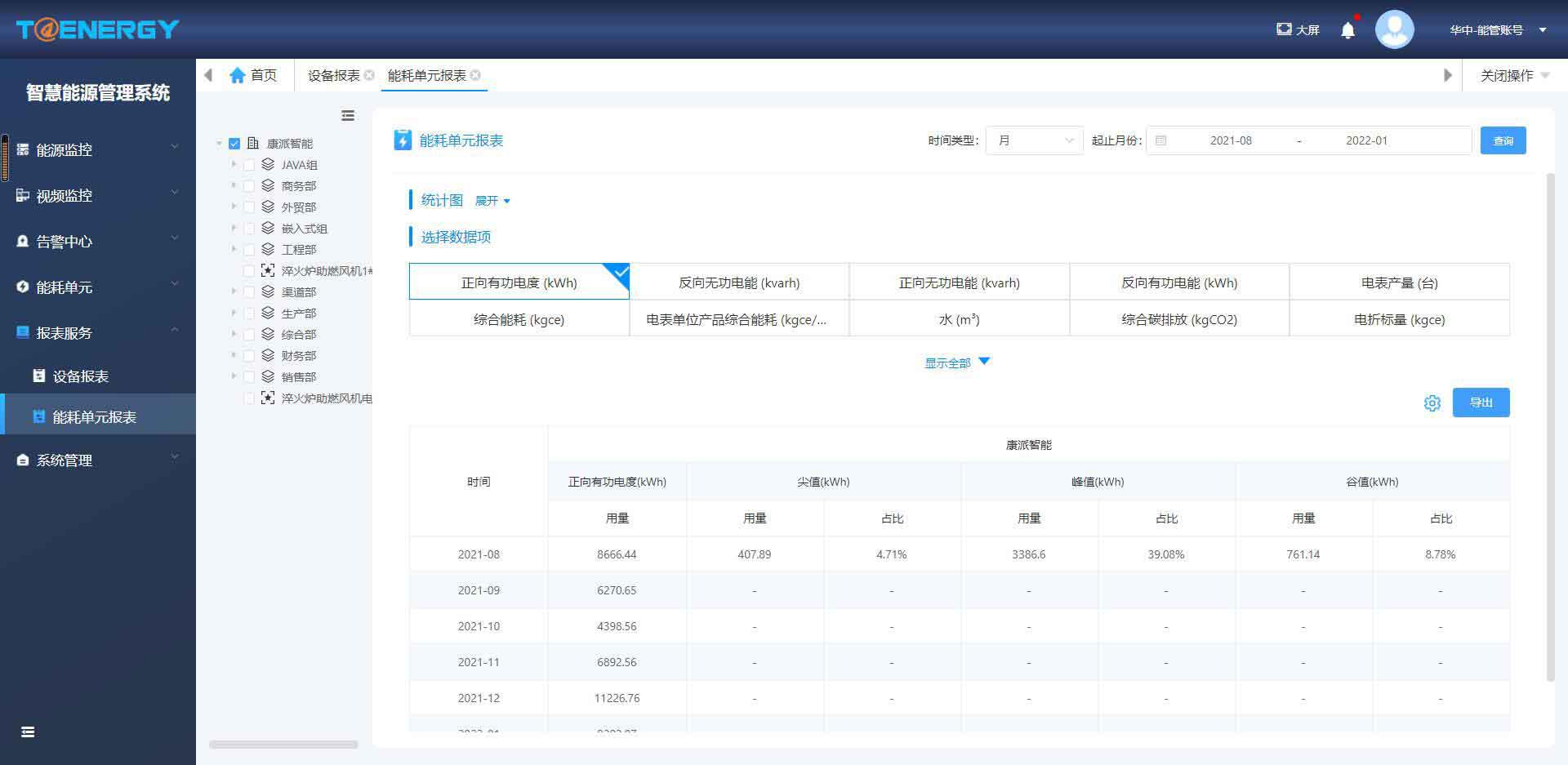 報(bào)表包含有日?qǐng)?bào)表、月報(bào)表和年報(bào)表。通過多樣化的報(bào)表服務(wù)滿足生產(chǎn)現(xiàn)場的多種多樣需求。報(bào)表設(shè)有打印功能,可定時(shí)自動(dòng)打印或觸發(fā)條件打印,并可導(dǎo)出到excel表格中,顯著減少抄表工作的人力成本,提高用戶的經(jīng)濟(jì)效益。展示單個(gè)或者多個(gè)能耗單元的多個(gè)用量數(shù)據(jù)項(xiàng)并在特定時(shí)間段內(nèi)計(jì)算其相關(guān)的數(shù)據(jù)項(xiàng)實(shí)時(shí)值。