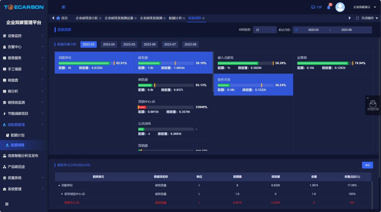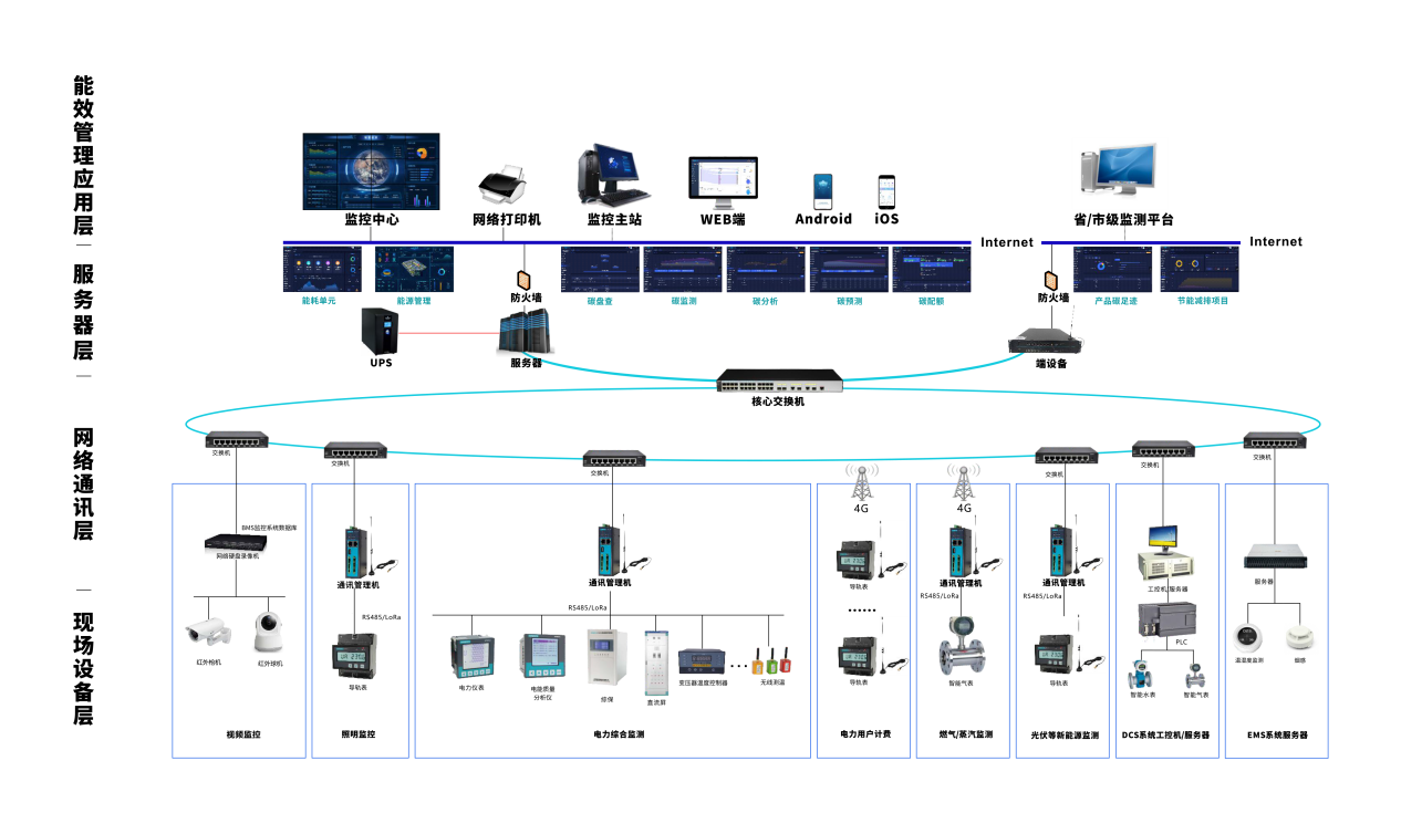 數字化能碳管理系統平臺是支撐工業企業和園區提升能耗雙控和碳排放雙控管理水平的信息系統,是加強工業節能降碳管理,推進數字技術賦能綠色低碳轉型的基礎工具。可幫助企業申報綠色工廠和零碳園區,滿足《工業企業和園區數字化能碳管理中心建設指南》中十二項功能,即能耗查詢、能源消費量和強度計算、能源消費分析與用能策略推薦、能效對標、能流分析、能效平衡與優化、用能與碳排放預算管理、碳排放、碳足跡核算、供應鏈碳管理、碳核查支撐、碳資產管理等功能。