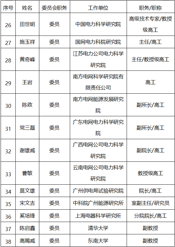 員兼秘書長(zhǎng),楊迪、閆華光任委員兼副秘書長(zhǎng),秘書處由南方電網(wǎng)科學(xué)研究院有限責(zé)任公司承擔(dān)。