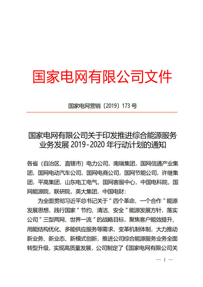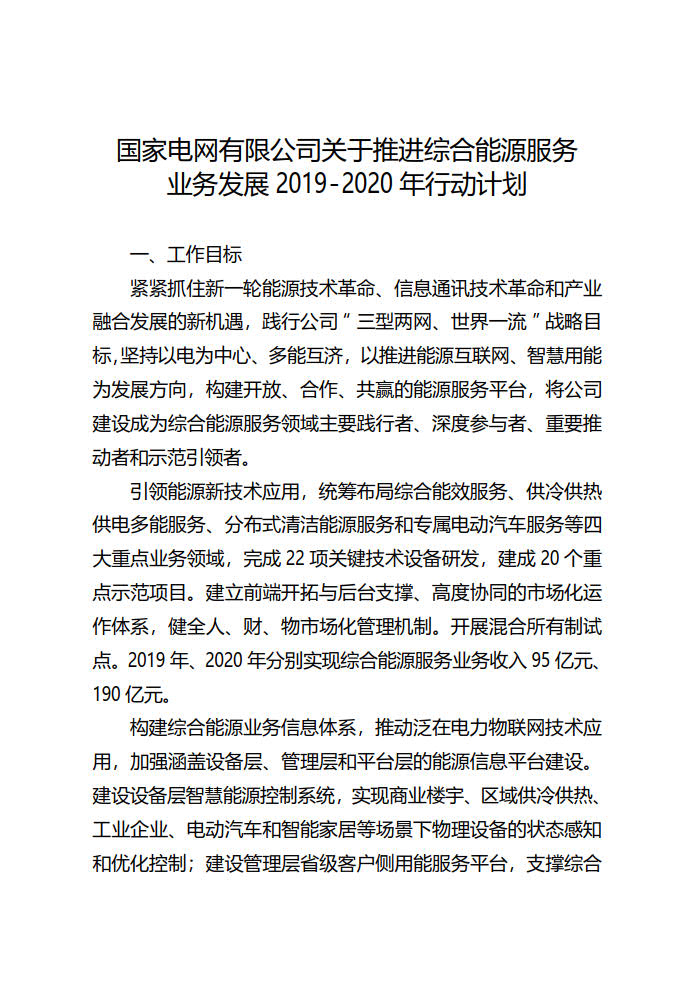 推進(jìn)綜合能源服務(wù)業(yè)務(wù)發(fā)展2019-2020年行動計劃