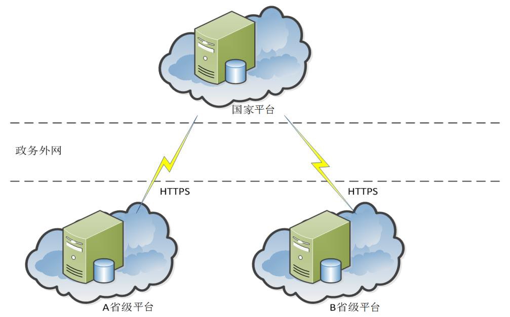 國家平臺與各省級平臺實現能耗在線監測數據的數據通訊功能,國家平臺與省級平臺網絡互聯互通使用國家政務外網,通信結構如下圖1所示: