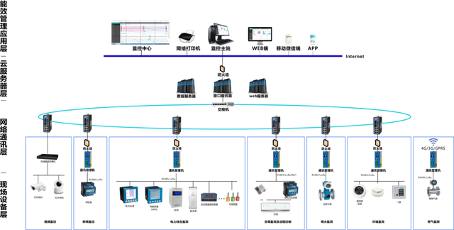 能源管理系統,包含對水、電、氣冷熱能源使用狀況管理,及現場壓力、溫濕度、視覺影像、生物識別等參數實行集中監測、管理和分散控制。以區域數據為基礎,結合“互聯網+大數據”的有效利用,自由組合成各能耗單元,通過智慧能管平臺實現實時監控、單耗指標、對比分析、專家評估、能源預測等功能。