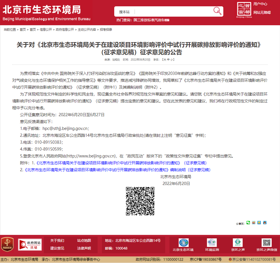 “環(huán)評(píng)+碳評(píng)”?北京發(fā)布最新公開(kāi)征求意見(jiàn)