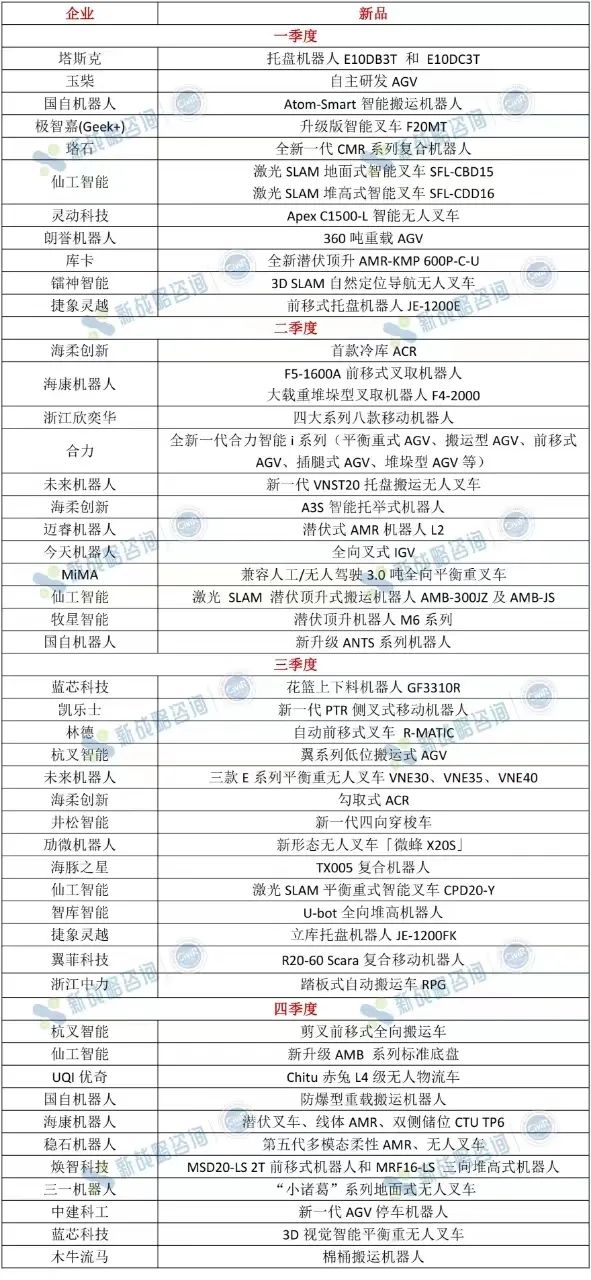 表:2023年AGV/AMR行業(yè)新產(chǎn)品(根據(jù)公開信息整理,如有未完善之處,請指正!)