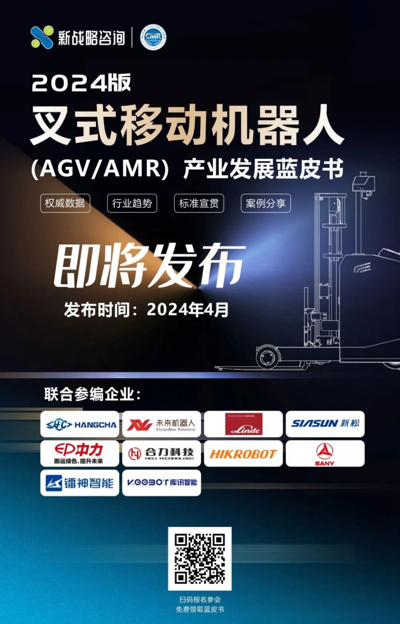 2024年,為了更好地探析當前無人叉車市場最新發(fā)展情況及趨勢,推動無人叉車深入應(yīng)用,彰顯行業(yè)品牌力量,由CMR產(chǎn)業(yè)聯(lián)盟主編,杭叉智能、未來機器人、林德、新松、浙江中力、合力、海康機器人、三一機器人、鐳神智能、哈工庫訊等企業(yè)聯(lián)合參編的《叉式移動機器人(AGV/AMR)產(chǎn)業(yè)發(fā)展藍皮書(2024版)》將在4月舉辦“第二屆全球無人叉車峰會”上重磅發(fā)布,敬請期待!