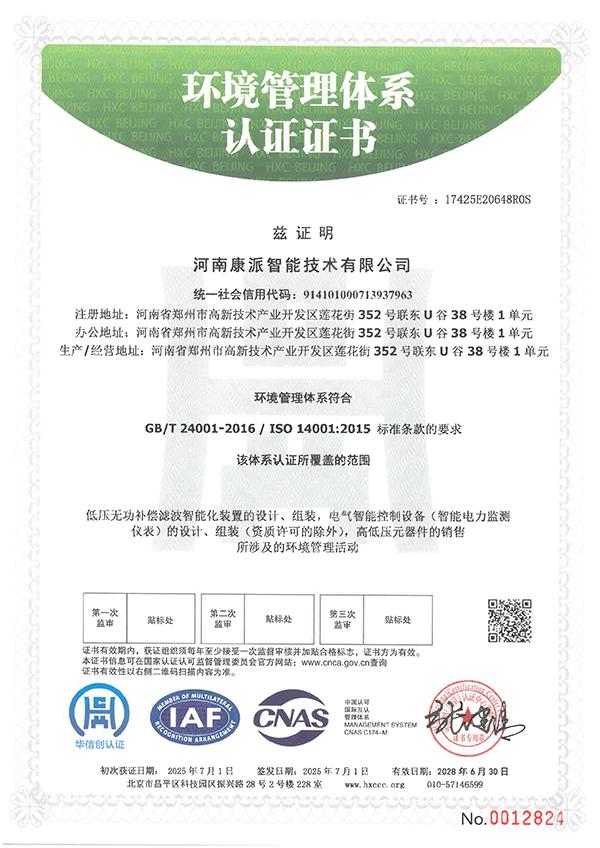 環境管理體系認證證書